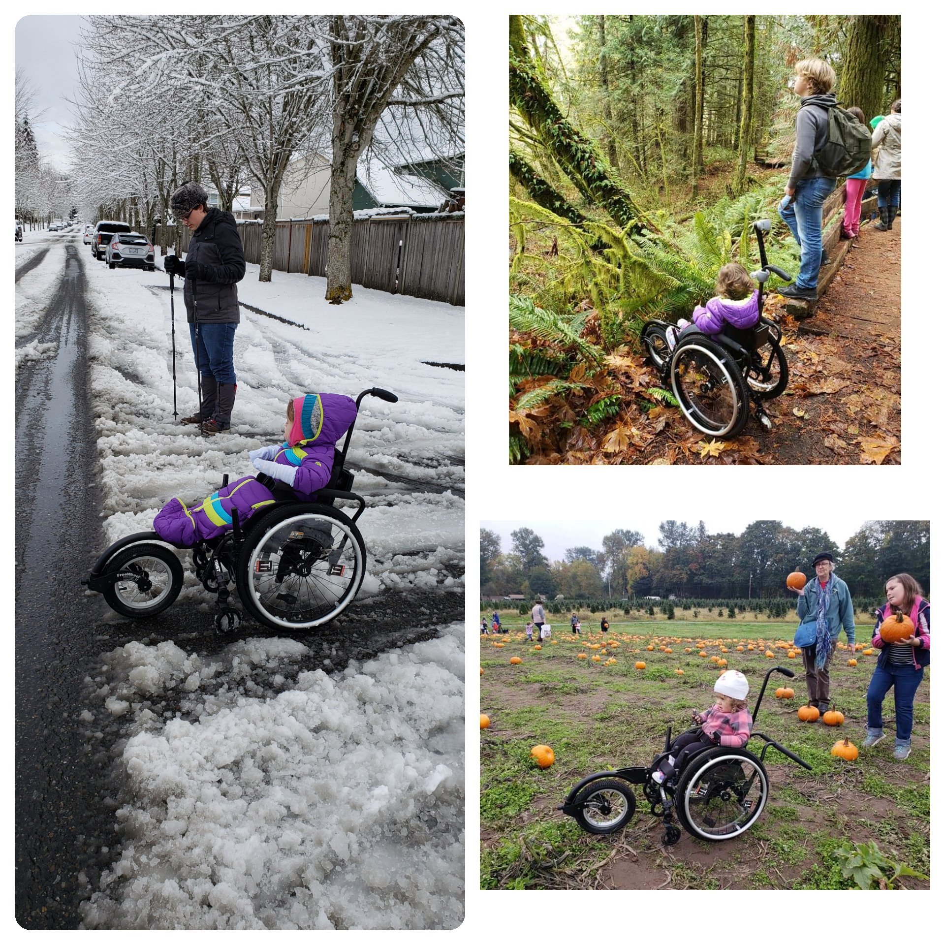When it came to ordering her wheelchair, we thought about our homeschool and family activities and pushed for three separate doctors to write letters of medical necessity for a freewheel to provide better accessibility to the types of places we would need it.