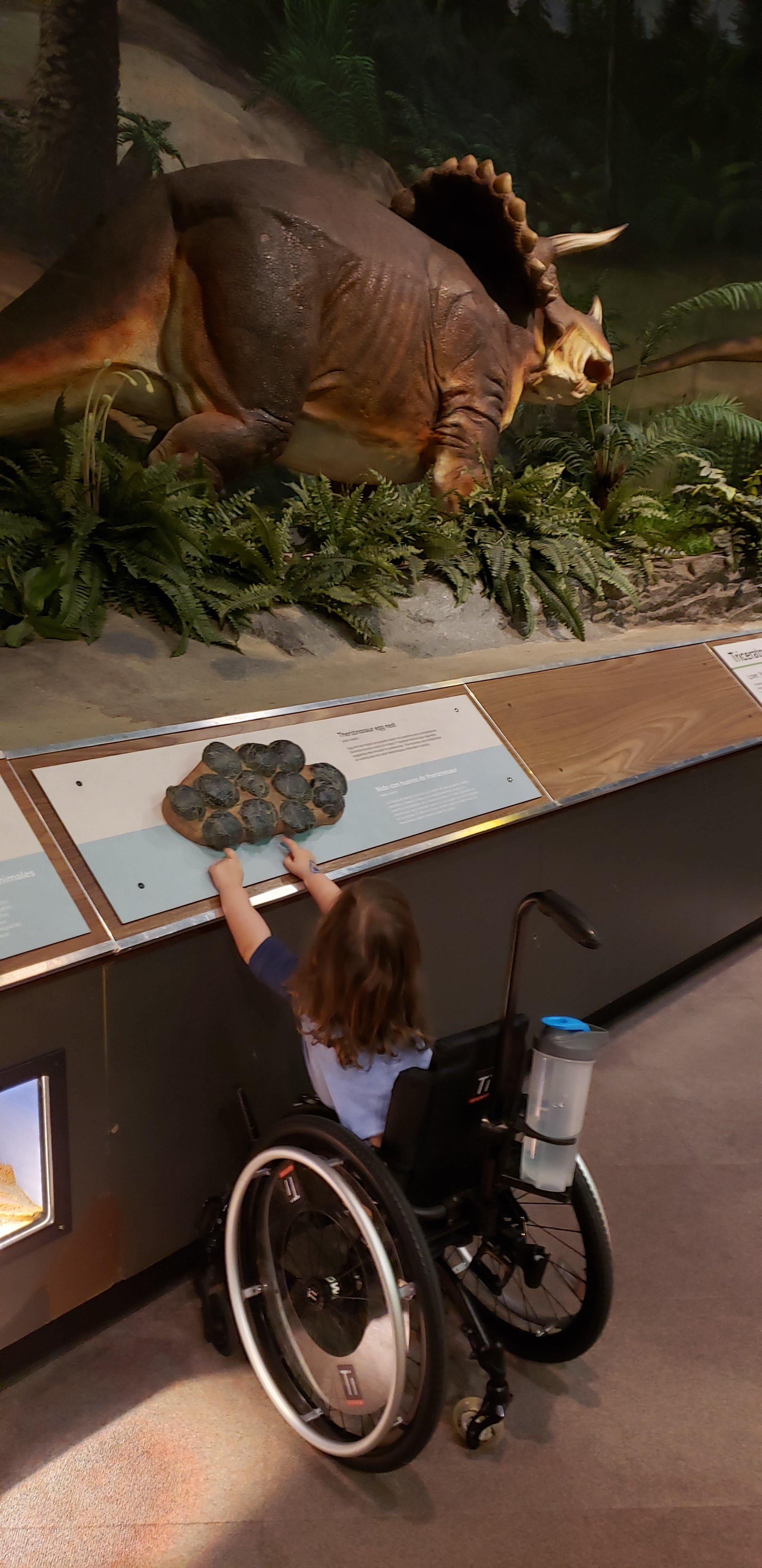 We moved to the adjacent room and the touch tank and toddler area in it. The touch tank is accessed by stairs with no ramp. The employee reminded us that we needed to wash hands only after we had lifted her chair up the steps. He quickly waived the requirement after realizing there was no she could reach the water. I ended up having to take her out of her chair to sit on the fake rock wall to have any chance of seeing/touching anything. At that point, she decided she was afraid of the one starfish the couple of hermit crabs within reach.