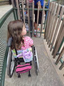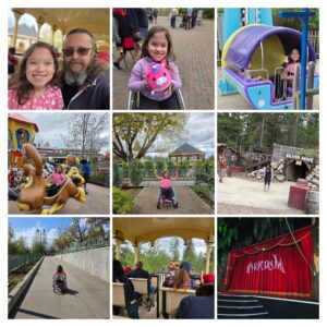 - Accessibility training. Our first stop inside the park is to the info center to pick up a height bracelet so that Evanna doesn’t need to be measured at each ride…requests for that can be ridiculous, offensive, and embarrassing when she (or worse, when she’s ignored and I’m asked as if she’s not there) if she can stand to be measured. And yet, it happens at least once every season, as if the ride operators don’t know what the height bracelets are for. Sometimes I can reason with the operators and explain, and sometimes can just look incredulous, point to her and say she’s in a wheelchair. But Saturday, she was made to wait through a ride cycle while we waited for a supervisor, while other kids had to maneuver around her. And to add to it, the particular ride operator was a returning operator, so he should have known.