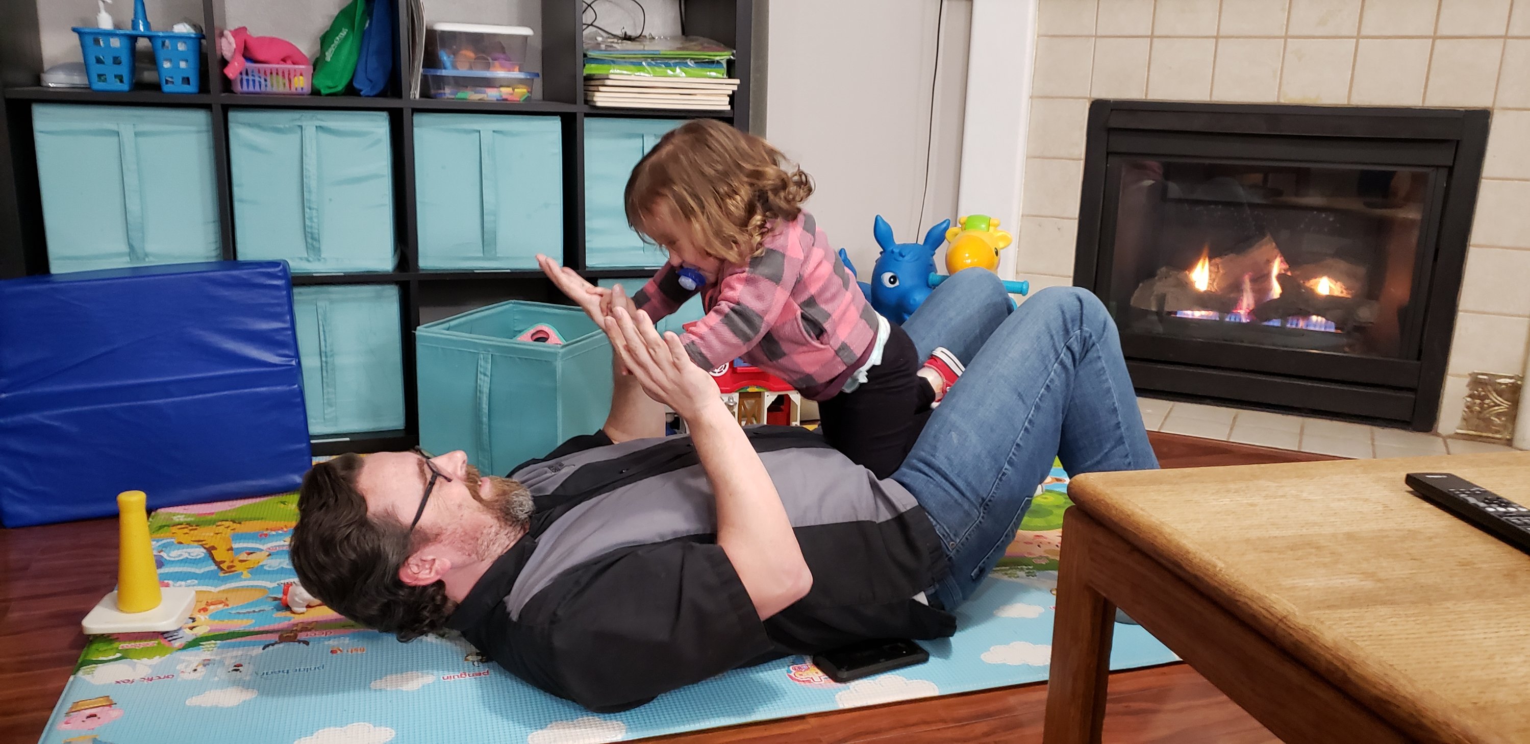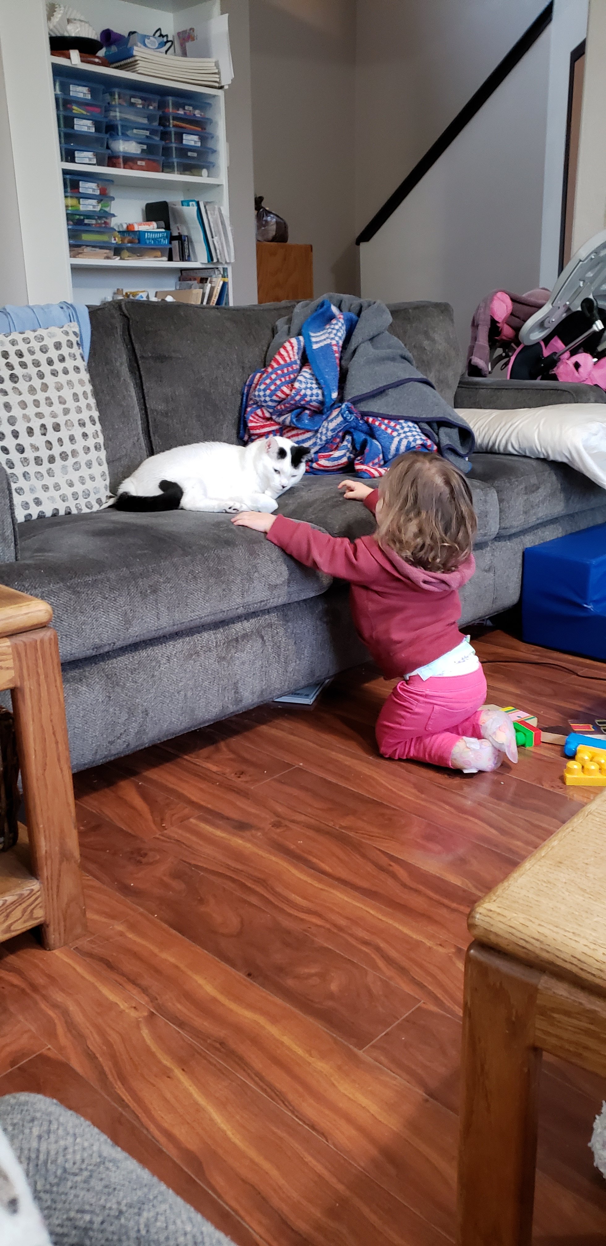 –Started pulling herself forward with her feet on a ride on toy or scooter board at PT (the last two attempts seemed like she has zero ability to use the muscles that do this).
